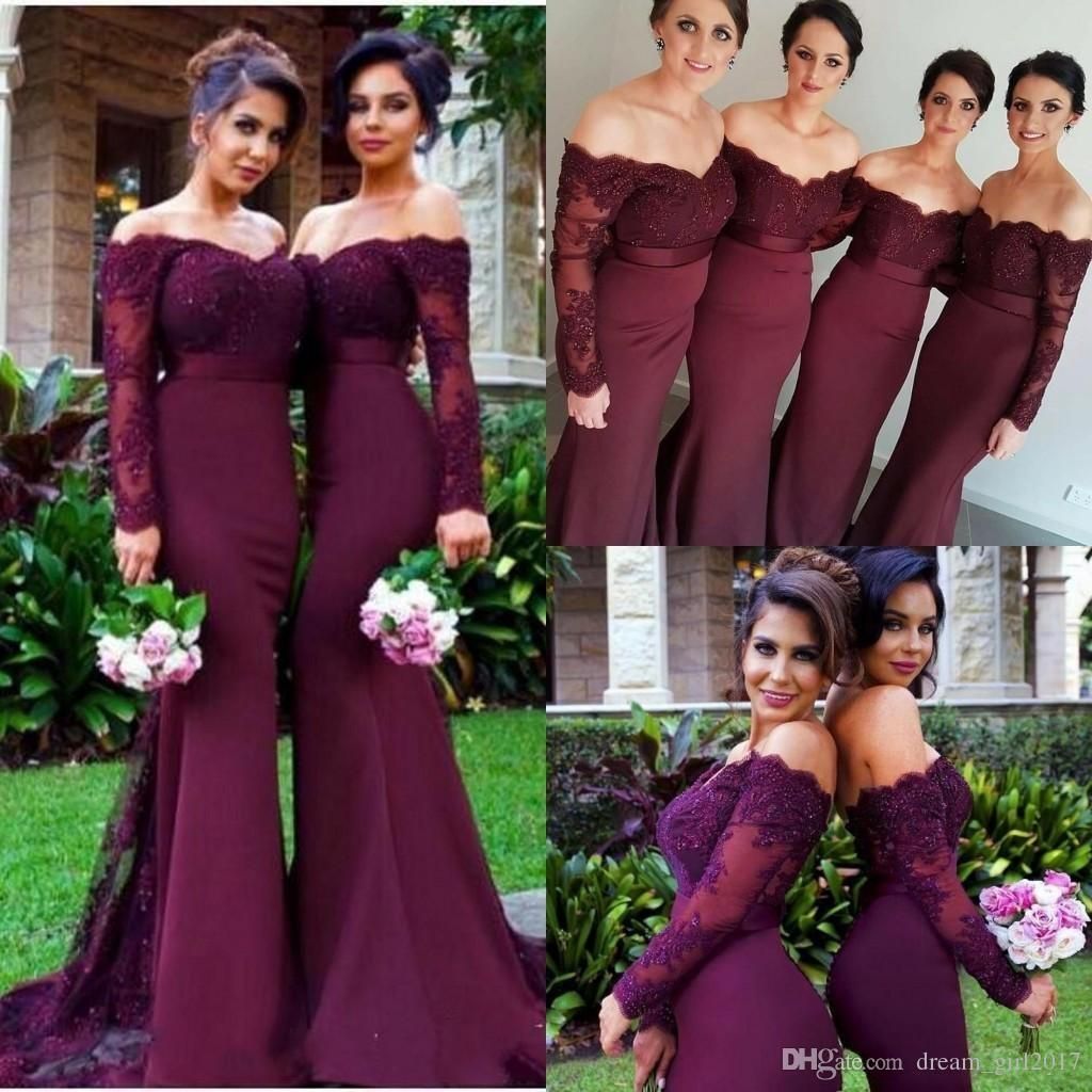Sexy Burgundy Mermaid Wedding Guest Dress Off Shoulder African Bridesmaid Dresses Long Sleeve Maid Of Honor Cheap Cocktail Party Gown Bridesmaid Dresses With Lace Bridesmaids Dresses Cheap From Honeywedding 82 42 Dhgate Com