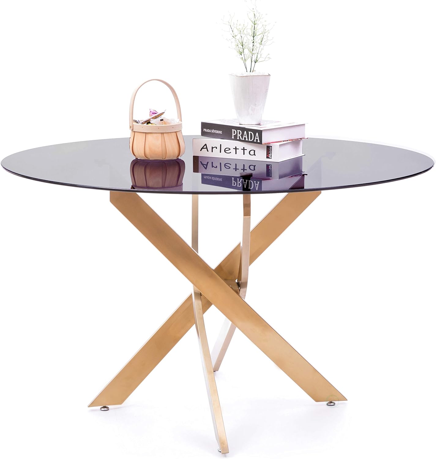 Amazon Com Bold Tones Round Smoked Glass Gold Stainless Steel Metal Modern Dining Table Tables